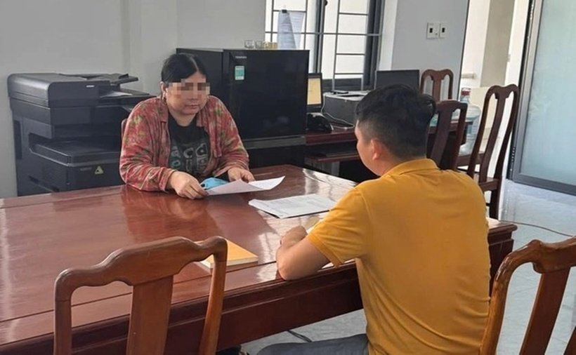 Nguyễn Thị D. tại cơ quan công an. (Ảnh: Thanh niên)