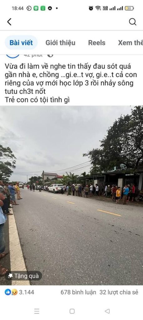 Chồng đâm vợ và con riêng 3 tuổi tử vong tại chỗ, sau đó đối tượng đạp xe ra sông Hồng, bỏ lại hung khí. Hiện chưa tìm thấy thi thể người chồng.