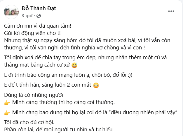 Từng đấy năm đến bức hình chụp chung gia đình còn không có, chưa bao giờ chủ động công khai bất kì gì lên MXH rằng mình là người đã có gia đình. Để làm gì?? Mọi người hiểu thôi :))