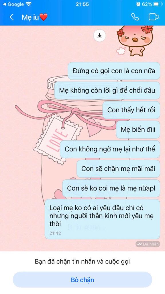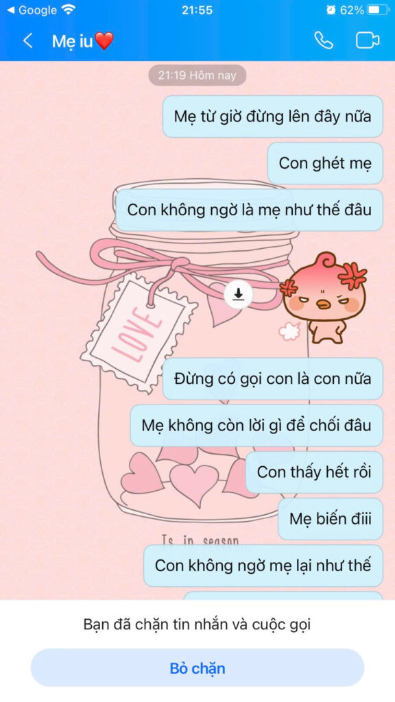 NHƯNG HƠN THẾ, ĐIỀU KHIẾN TÔI PHẪN NỘ ĐẾN TẬN XƯƠNG TUỶ KHÔNG PHẢI CHỈ LÀ SỰ PHẢN BỘI TRONG TÌNH CẢM . Mà là cách một người mang danh nghĩa “làm mẹ” lại bỏ mặc chính con gái mình.